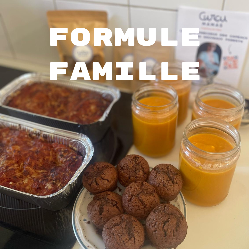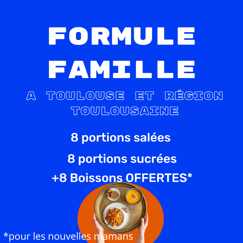 en bénéficiant du crédit d'impôt En savoir plusCette formule contient 8 portions salées (par exemple : lasagnes et tajine de légumes rôtis) + 8 portions sucrées (par exemple : granola et fondant chocolat) et 8 boissons OFFERTES aux jeunes mamans (Chai et Lait d’or) - tout changement possible sur demande. Si la cuisine à domicile n'est pas possible, je peux livrer dans certains cas (merci de me contacter)